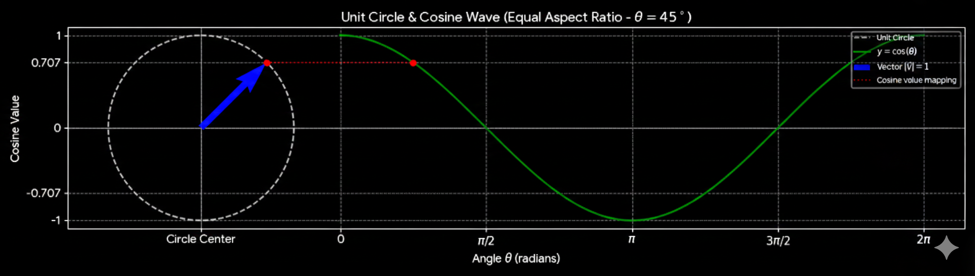 $$\text{If } C = (0.707106811865, 0.707106811865),\hspace{5pt} C, \cos = C.x = 0.707106811865$$