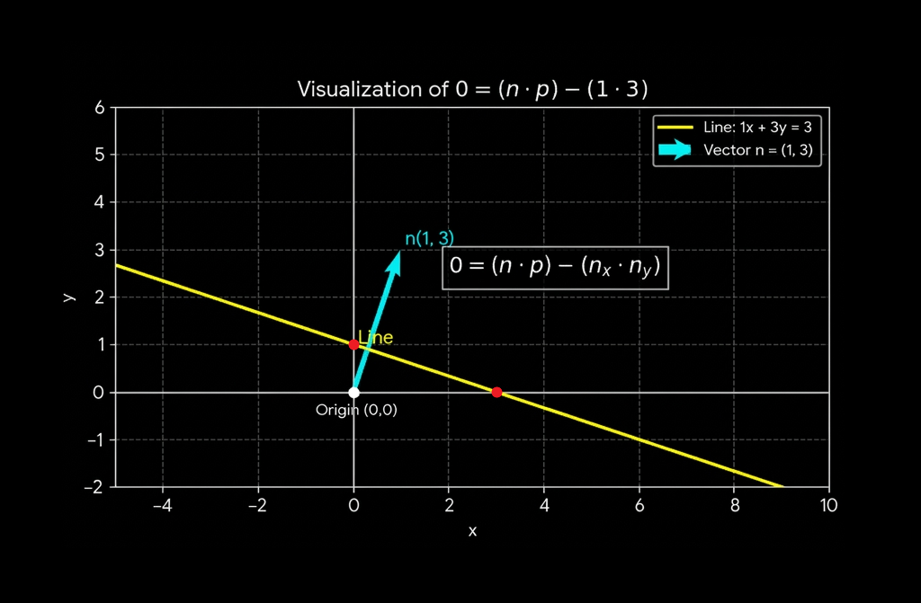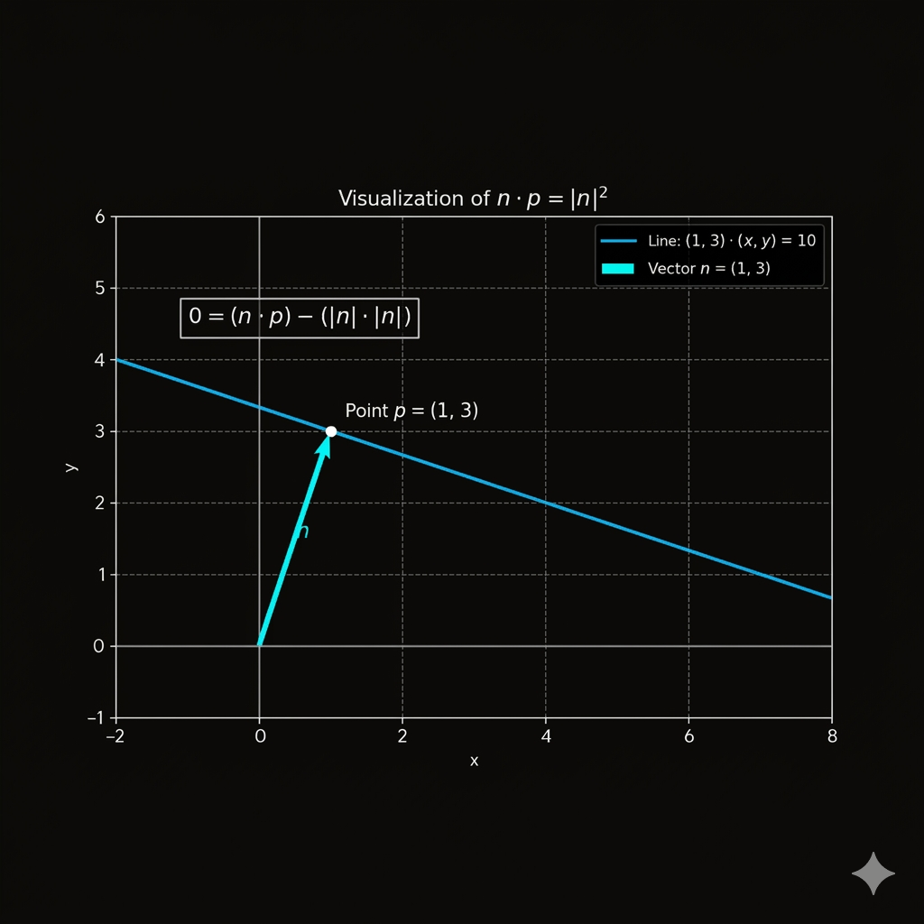 $$\mathbf{n} \cdot \mathbf{p} - \mathbf{offset} = (a \cdot x) + (b \cdot y) - (\mathbf{|n|}^2) $$